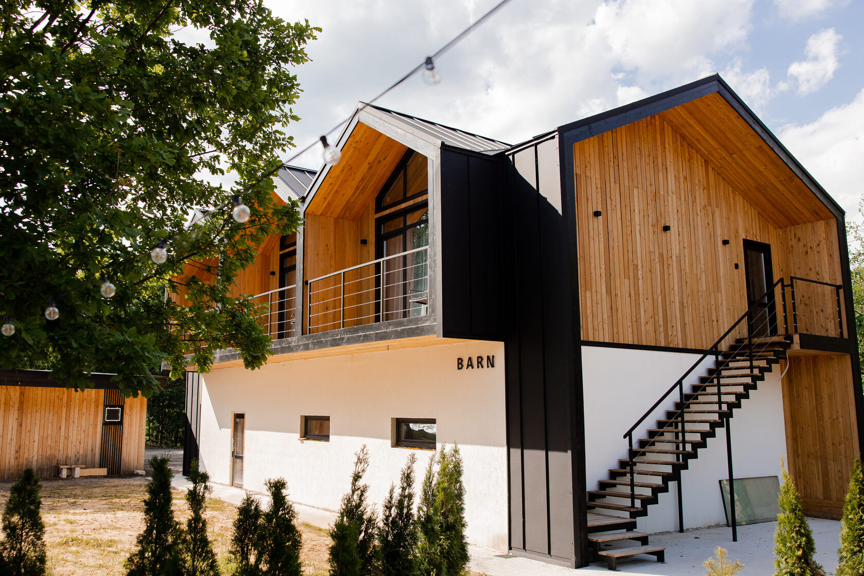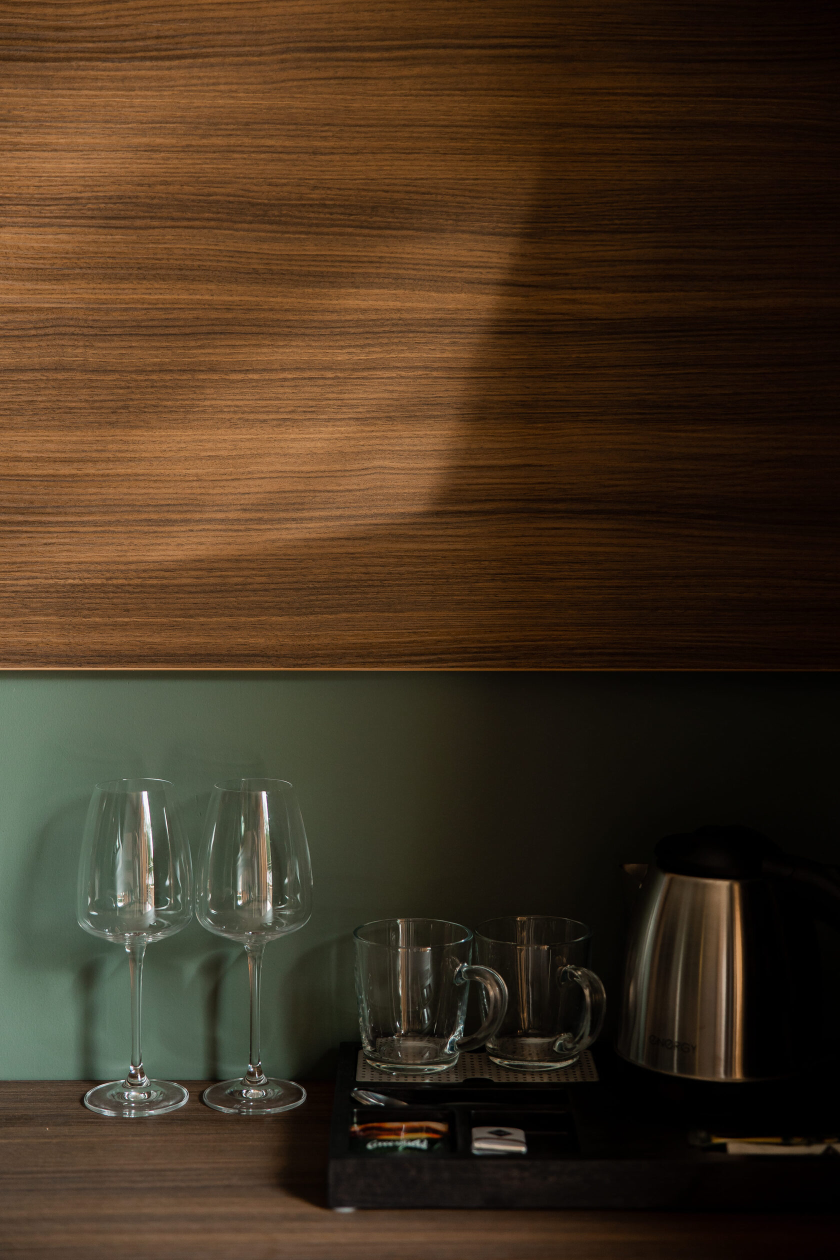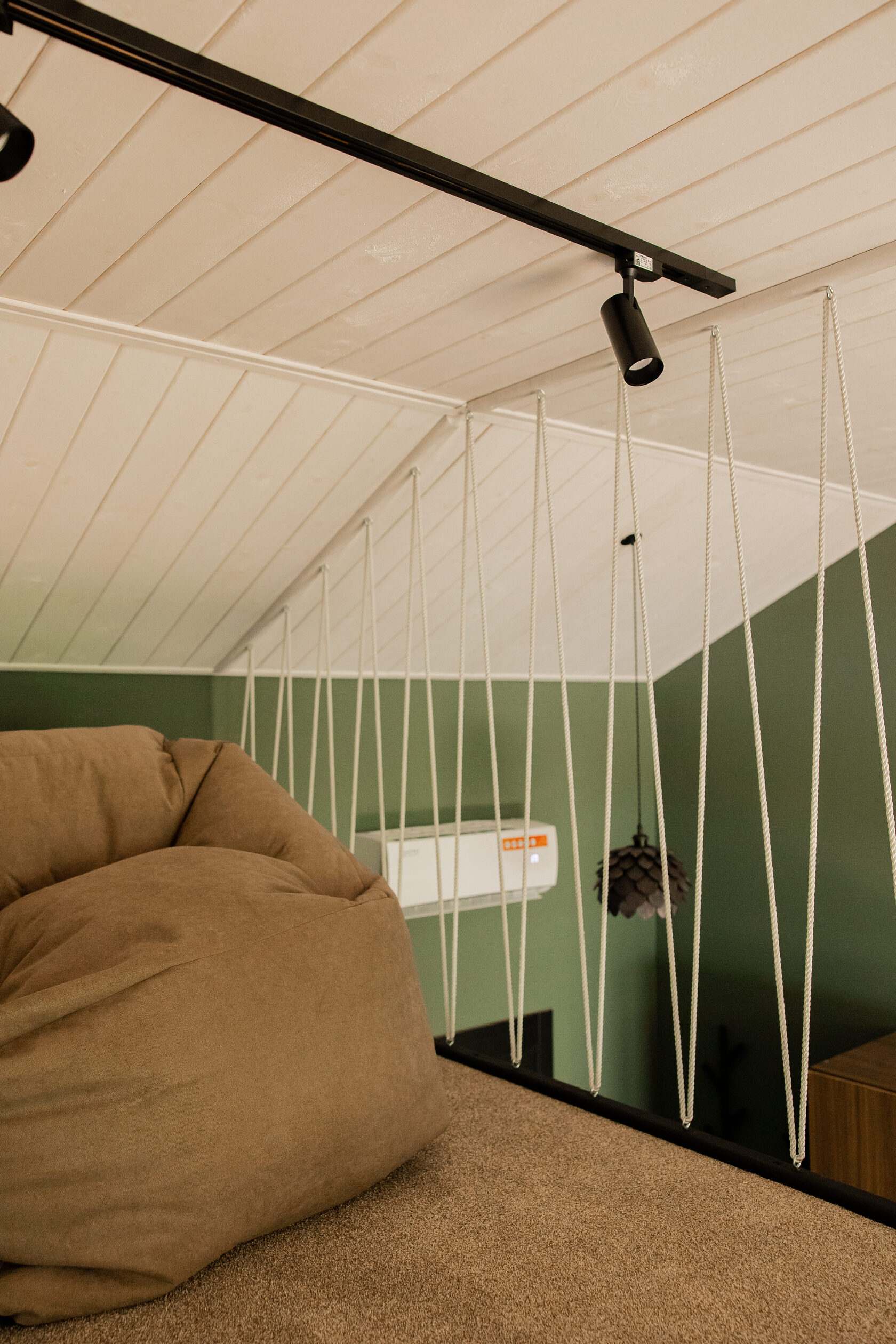 Номер в барнхаусе в спокойном зеленом оформлении — отличное решение для отдыха вдвоем или с маленьким ребенком. С панорамного окна открывается живописный вид на Волгу, которым Вы можете насладиться на террасе с чашкой кофе.